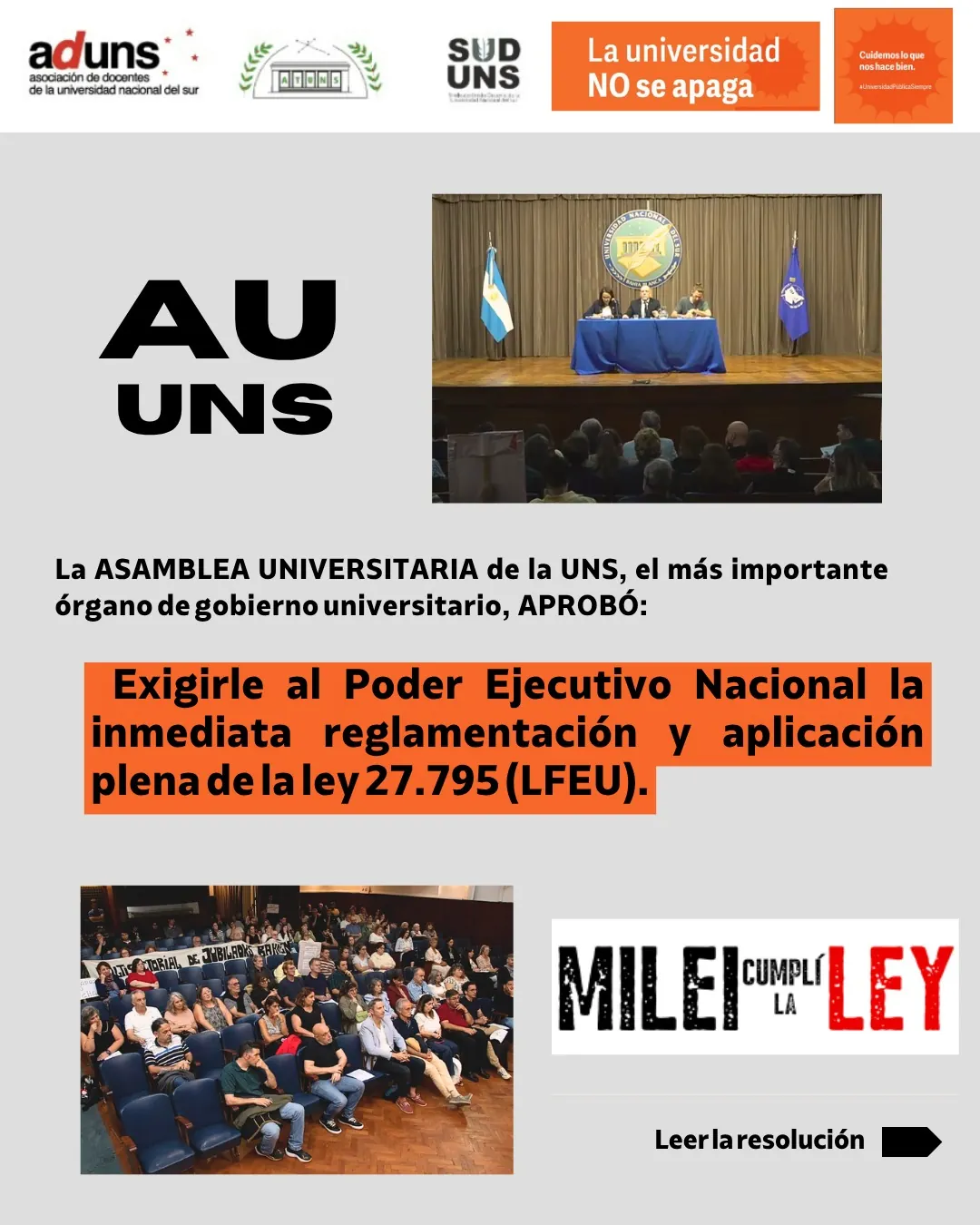 La ASAMBLEA UNIVERSITARIA de la UNS, el más importante órgano de gobierno universitario, APROBÓ: