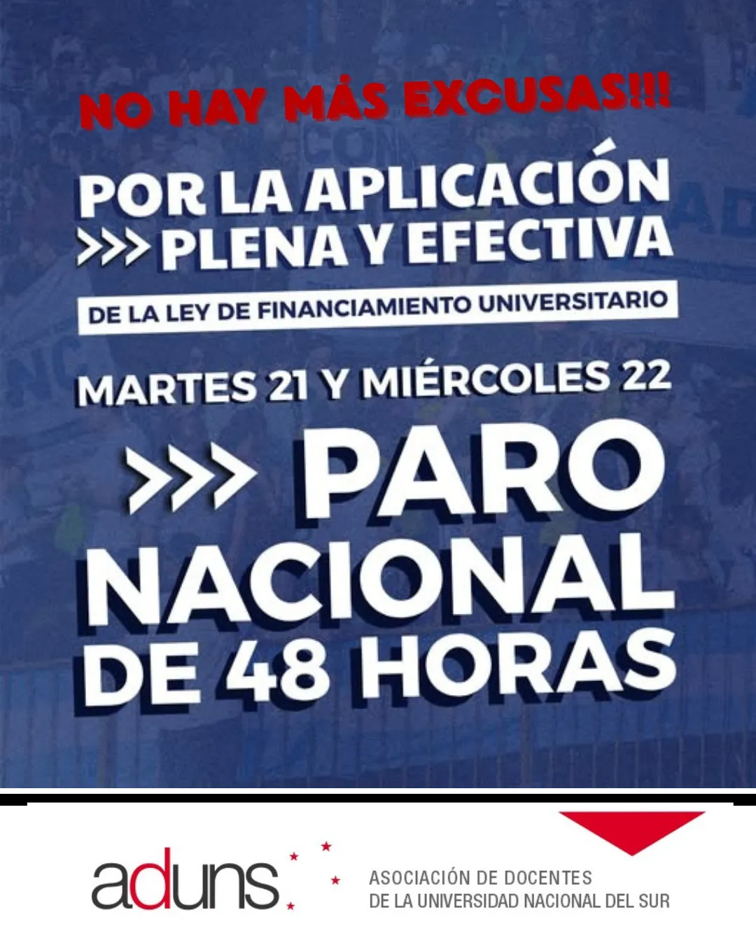 Organizan y Convocan: ADUNS y UMSur, el sindicato de Músicos/as del Sur)