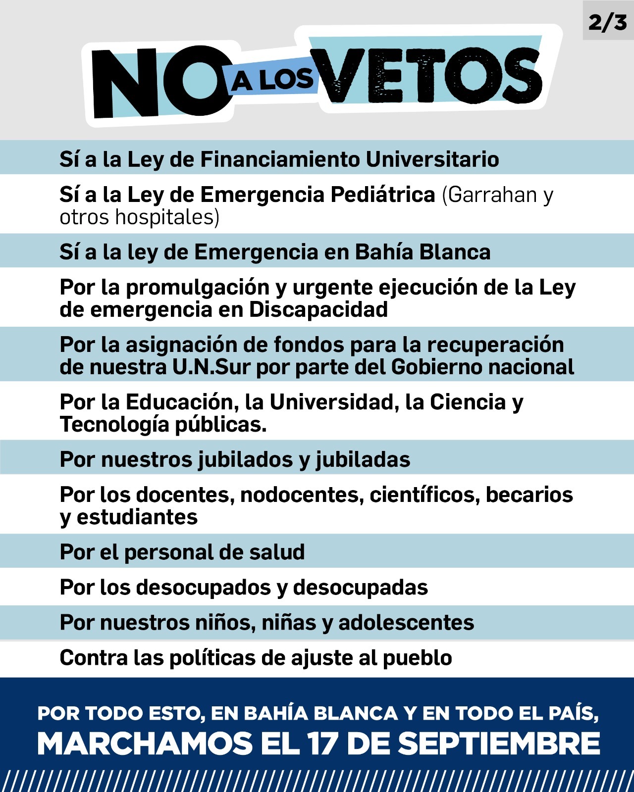 NO A LOS VETOS: Movilización y posterior Acto en el Playón Alem de la UNS.