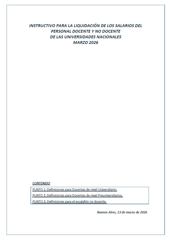 Ayer, 13 de marzo, en horas de la tarde, llegó desde la Subsecretaría de Políticas Universitarias el instructivo de liquidación de salarios para docentes y no docentes de UUNN.