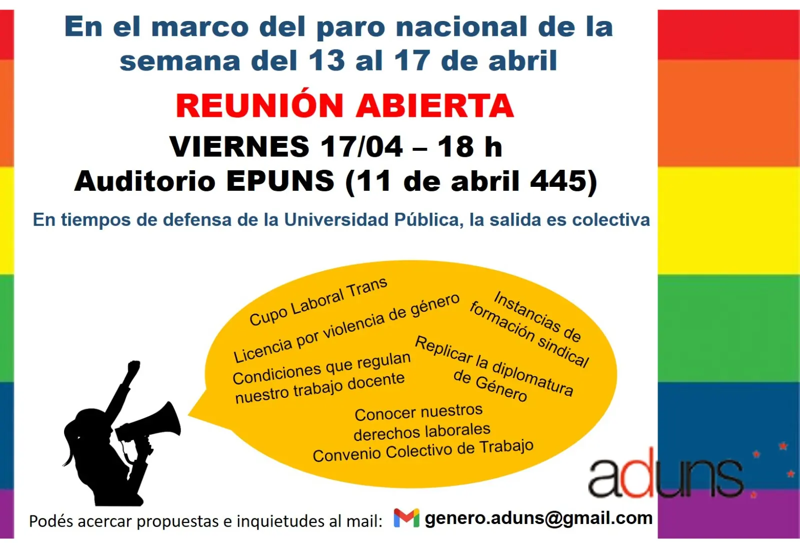📣Entre esos temas tenemos la licencia por violencia de género, el cupo laboral trans, el conocimiento de las condiciones que regulan nuestro trabajo docente, el contenido de nuestro Convenio Colectivo de Trabajo a través de reuniones y charlas para nuevos docentes de la Universidad (en primera instancia porque obviamente se pueden sumar los que ya están en actividad, claro). También conversamos sobre la necesidad y riqueza de generar instancias de formación sindical y la búsqueda de alternativas para replicar la diplomatura de género.