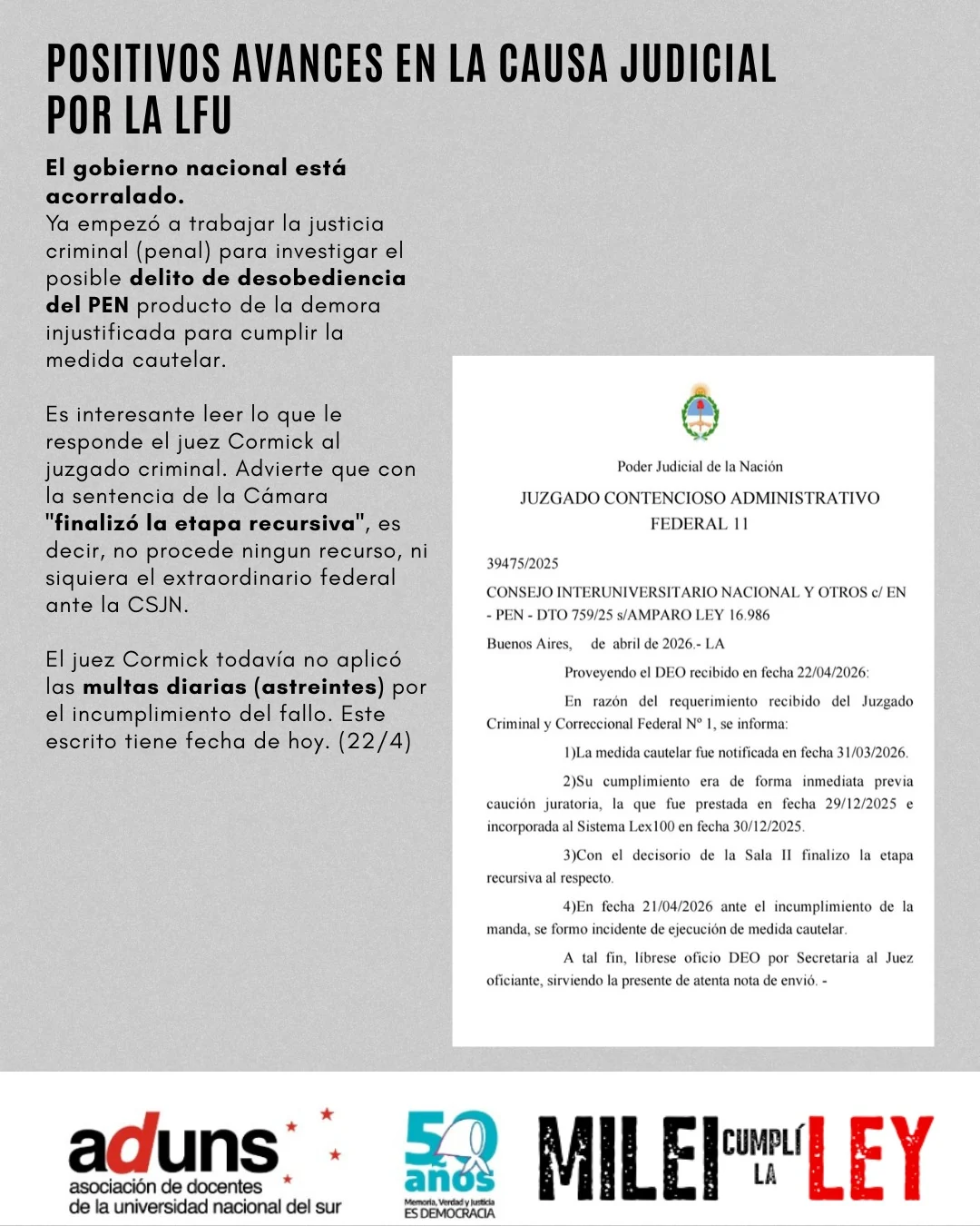 Lanzamiento abierto e interinstitucional de la CAMPAÑA por la Ley de Financiamiento Universitario y posterior ABRAZO a la UNS